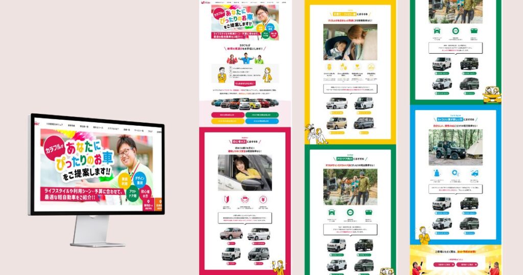 カーショップのホームページ 2025 9/30 カーショップのホームページです。 このカーショップのホームページでは、構築を担当させていただきました。 レシポンシブでは、ビビッドな配色を活かしつつ、スマホでの可読性にも配慮しました。 構築実績