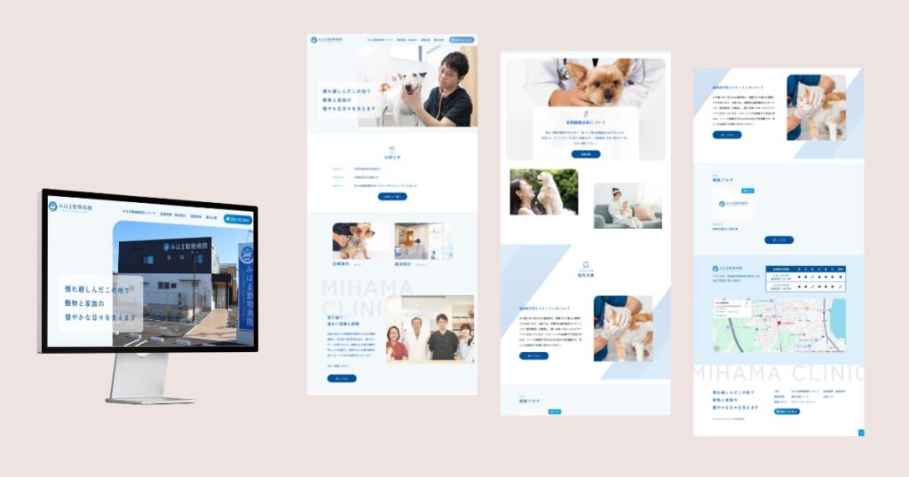 動物病院のホームページ 2025 9/30 動物病院のホームページです。 こちらのホームページでは、構築を担当させていただきました。 WordPressテーマのSnow Monkeyを使用し構築しています。 情報量が多い中でも可読性を重視し、レシポンシブでは余白と見出しを工夫いたしました。 https://mihama-ah.net 構築実績